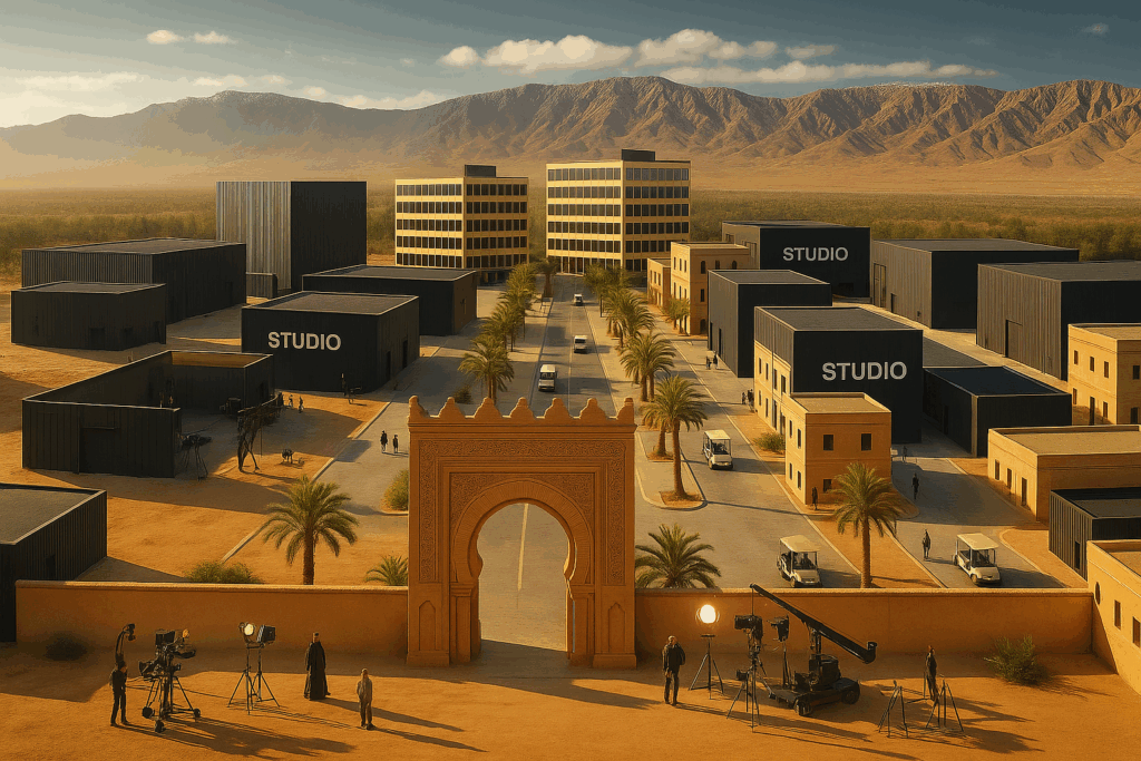 - Backlots et décors permanents inspirés des architectures marocaines et internationales. -