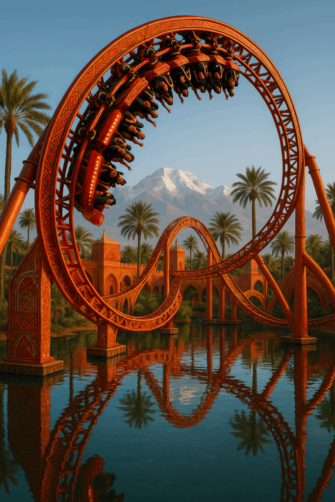 CinéMarraKecH accueille un ensemble de 26 attractions spectaculaires inspirées du cinéma, de l’Afrique et de l’imaginaire collectif. Conçues pour tous les âges, ces expériences immersives mêlent sensations fortes, décors visuels, et technologie de pointe.